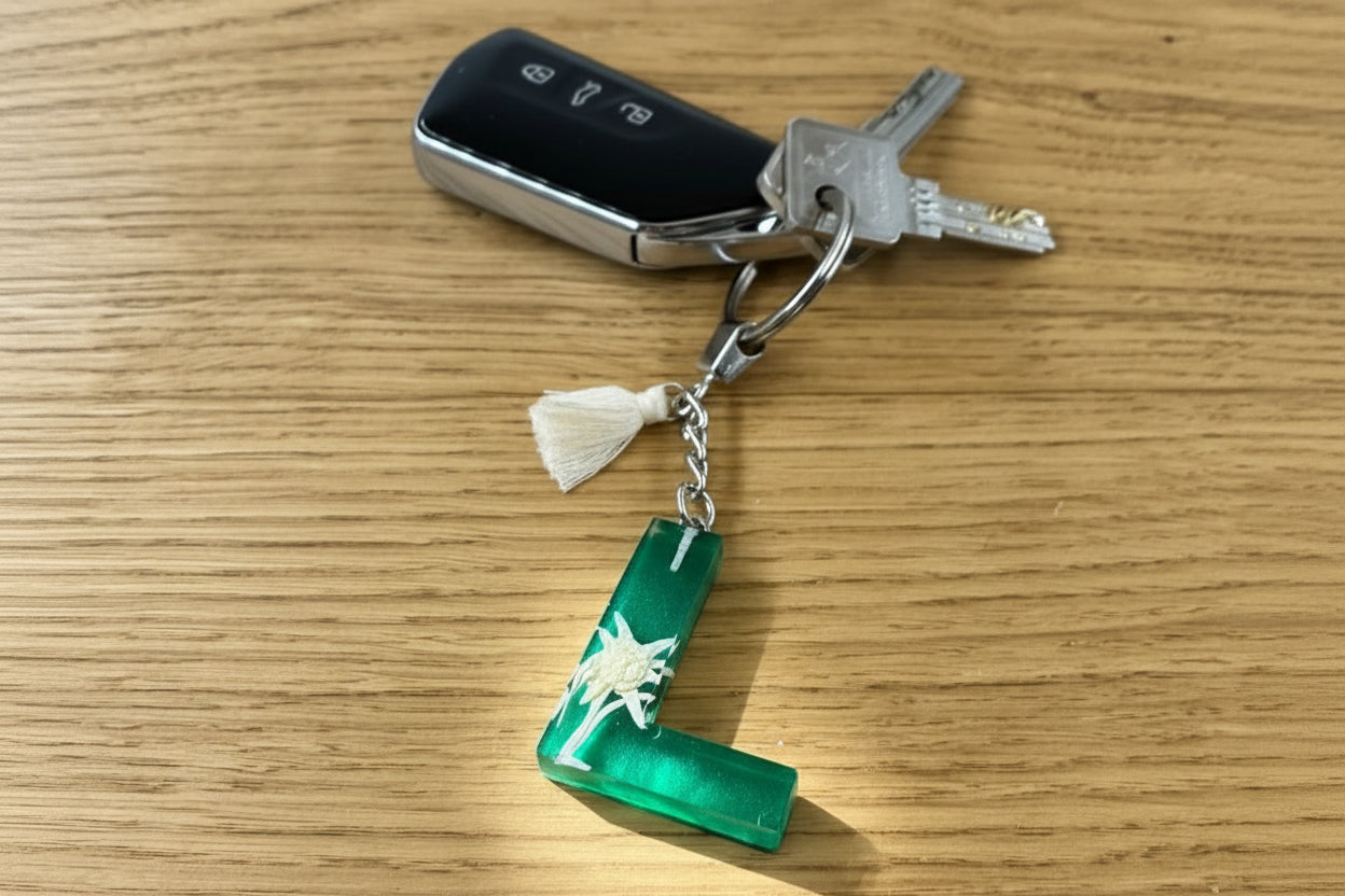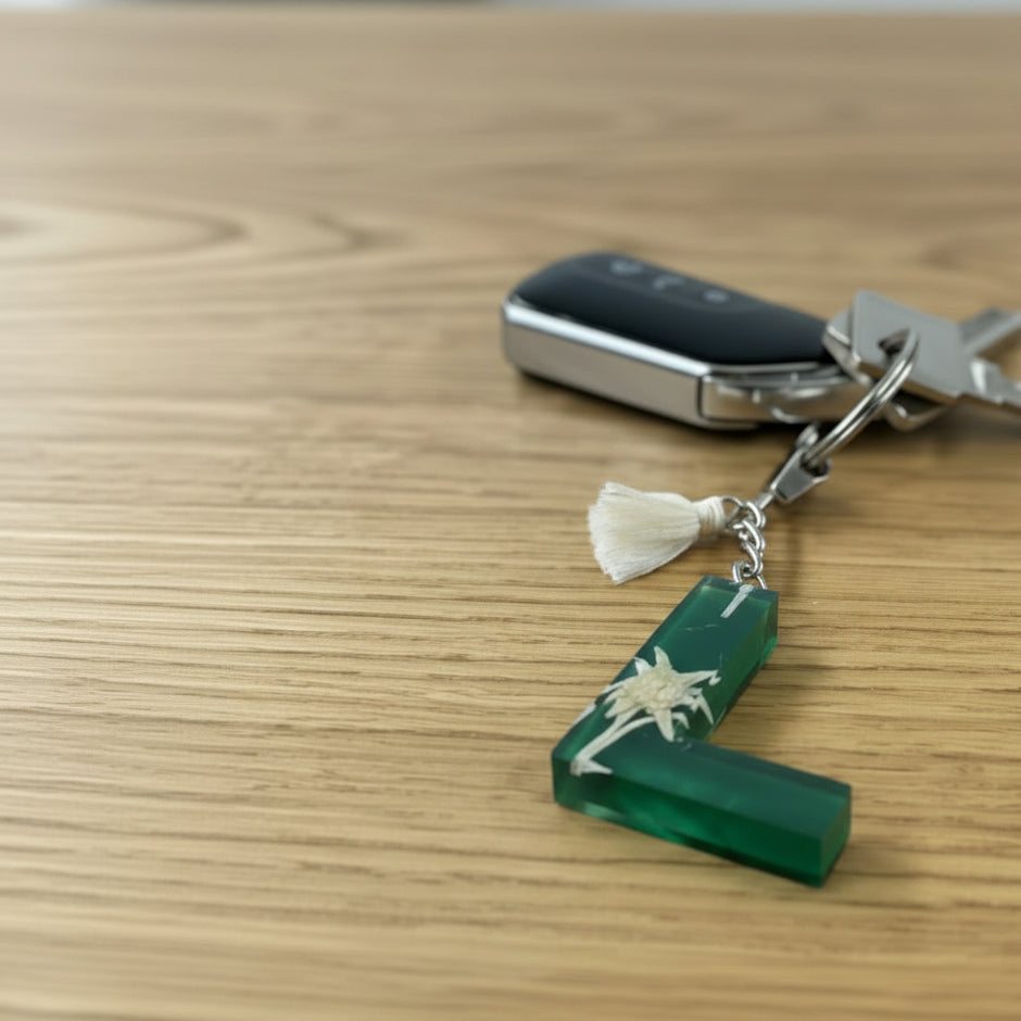 Jeder unserer Schlüsselanhänger ist ein Unikat. Mit echter Blütenpracht.